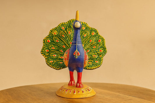 Handpainted Brass Peacock Figurine – Vibrant Indian Decor Accent – Traditional Folk Art for Home & Gifting