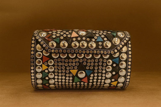 Handcrafted Geometric Studded Clutch - Retro-Mod & Tribal Mosaic Evening Bags