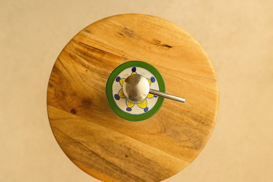 Handpainted Wooden Spice Box - 4-Compartment Masala & Dry Fruit Box with Rajasthani Folk Art Lid