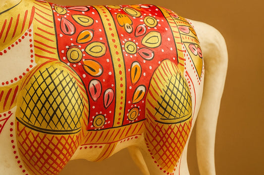 Handpainted Wooden Elephant Figurine – Shikari Art in Red – Traditional Decor & Collector’s Gift