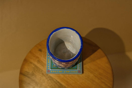 Hand-Painted Ceramic Tumbler – Indian Blue Pottery Drinkware for Tea & Coffee | Floral Design Pottery Glass