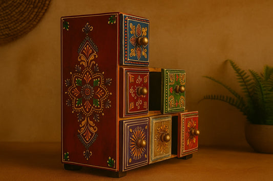 Hand-Painted Wooden Storage Box – Indian Folk Art Jewelry & Trinket Chest | Colorful Accent Decor