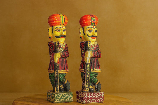 Rajasthani Wooden Royal Guard Statues – Handcrafted Decorative Pair – Ethnic Indian Home Decor Showpiece