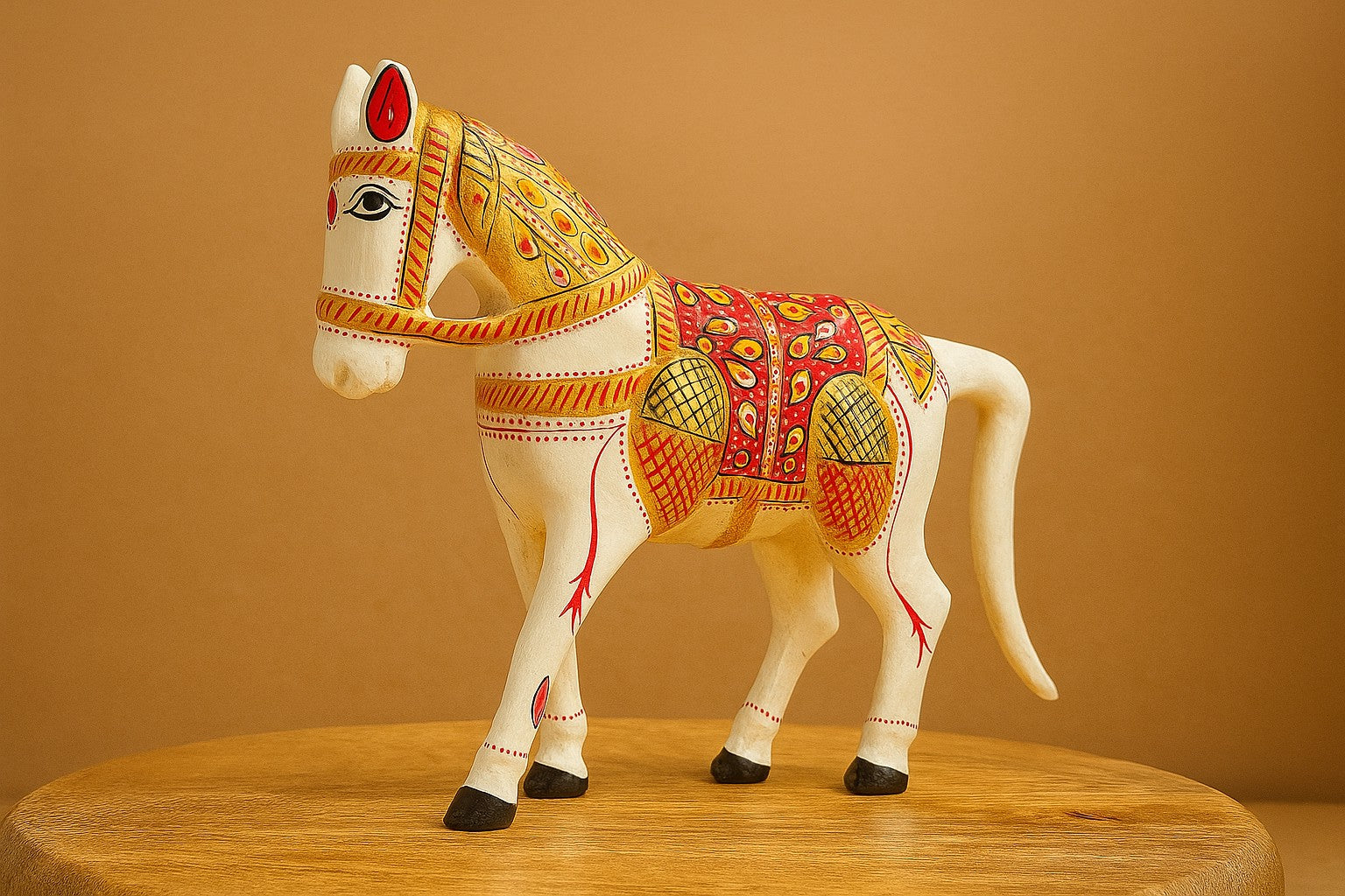 🔸 Rich in Folk Heritage: Decorated in detailed Rajasthani motifs and saddle patterns, reflecting traditional desert royalty and cultural elegance.